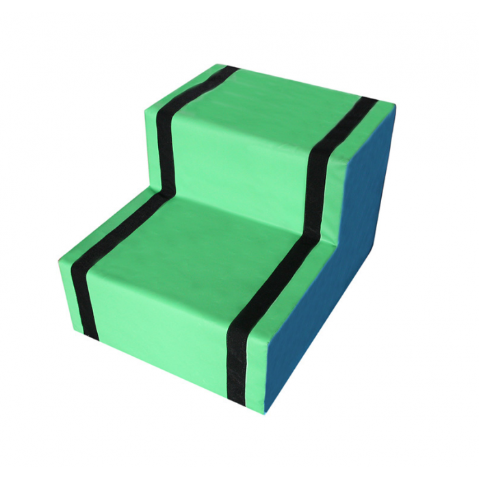 ספוג קשיח, כיסוי PVC עמיד, רחיץ וניתן להסרה, 2 מדרגות, אורך 80 ס"מ, רוחב 60 ס"מ, גובה 75 ס"מ, גובה מדרגה ראשונה 25 ס"מ, גובה מדרגה שנייה 50 ס"מ.