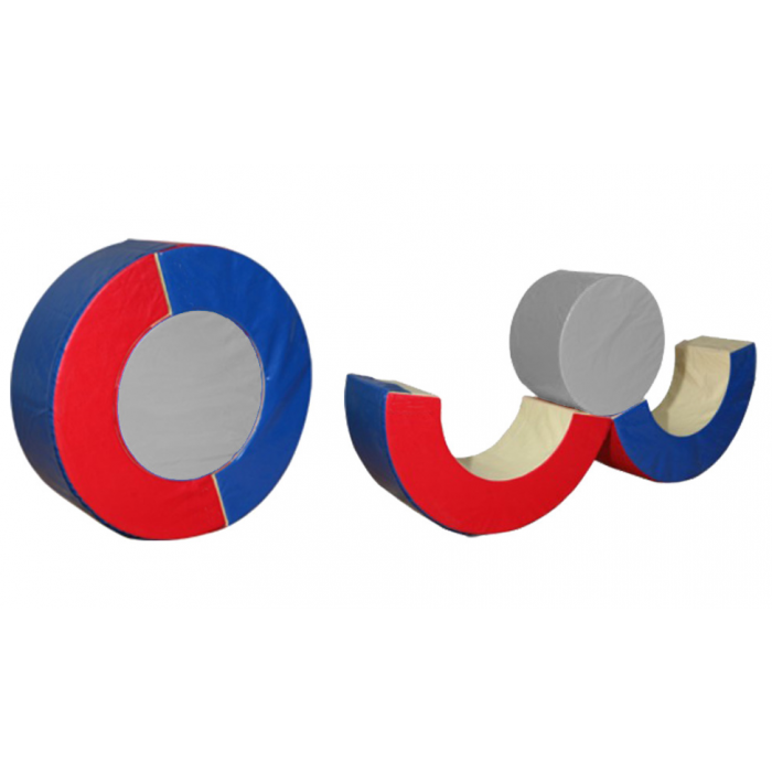 ספוג קשיח, כיסוי PVC עמיד, רחיץ וניתן להסרה, היקף חיצוני 130 ס"מ, היקף פנימי 75 ס"מ, גובה 65 ס"מ, רוחב 50 ס"מ.