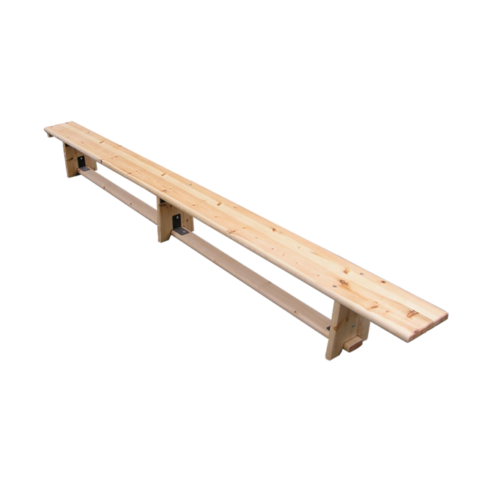 עשוי עץ אורן, זוויות מתכת לחיזוק הרגליים ולהבטחת היציבות, קצוות לוח מעוגלות, בקצוות הספסלים בלט נוסף המאפשר תליה על סולם שבדי, מידות 330*24*32 ס"מ.